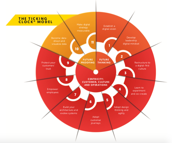 Our Ticking Clock model aims to help leaders develop that vision and understand how they can succeed on the digital journey. Critically, it is not about developing a ‘digital strategy,’ but a strategy in a digital world. The approach is based on three strategic stages.
