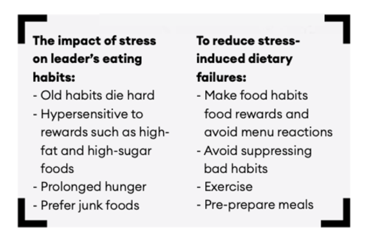 Stress has a profound impact on our eating habits: we rely on old habits, we become hypersensitive to high-fat/high-sugar rewards, we feel prolonged hunger, and we prefer junk foods. Target these factors with four key steps: