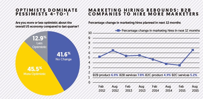 First, she notes: “Marketers need to lead more externally facing areas of the firm. With marketing leading innovation in only 36% of companies, there is a missed opportunity here for marketing to contribute. Marketing leaders need to step up to these responsibilities and build a case for them to lead these activities. Second, marketing leaders need to build their impact through a strong organizational base – a base that has a focus on customers, which is marketing’s critical currency.” According to the 2015 CMO survey, 29% of companies are organized around customer groups.
