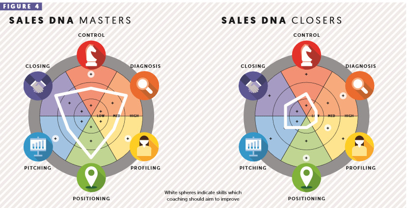 People with a sales job title are not all the same; they operate across four persona loops. With coaching, some people can change their loop. Some are best matched to selling complex solutions, others to transactional products. But some are best assigned to non-selling customer support or product merchandizing roles. Developing staff to better fit their sales role, and redeploying staff not suited to selling, becomes a more exact science when SalesDNA and persona loops are used as guides.