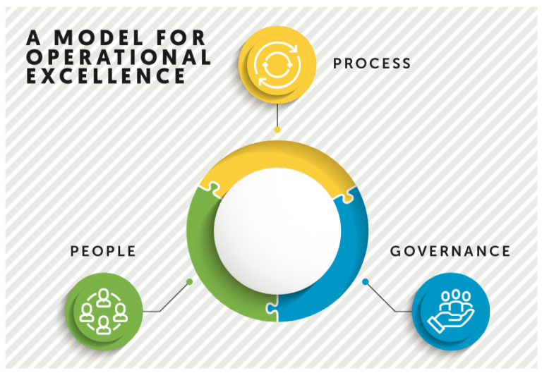 Bringing together the three operational excellence enablers creates a multiplier for scaling operational excellence. Achieving the right balance of process autonomy and alignment, coupled with the right mix of traditional and non-traditional competencies, and integrating that under an umbrella of agile governance anchored in a delivery focus, is the secret to expediting operational excellence.