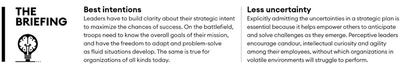 Perceptive leaders are not only clear about their overall intent but also explicitly identify and acknowledge key uncertainties as they make their choice. This is crucial, for several reasons.