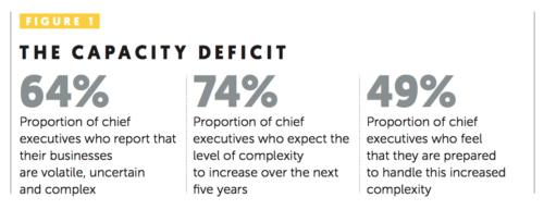 Only 62% of strategic initiatives today have a clear link between objectives and strategy. And a whopping 41% of projects fail due to changes in strategy. The plan often calls for a linear progression. Yet the strategic reality demands adaptation to unexpected, disruptive events. Managers now spend more than 25% of their time on unanticipated work. So, good plans are essential, but the ability to adapt and manage change is increasingly becoming the real work, not the exception. Yet some 45% of chief executives say the leading barrier to successful project implementation is lack of change-management skills. As an executive said to me recently: “I know the world is more complex, but we need our organization to go faster and make work simpler.” Preparing people to lean into the complexity – and simplify it for others by knowing how to focus on what matters most – is critical.