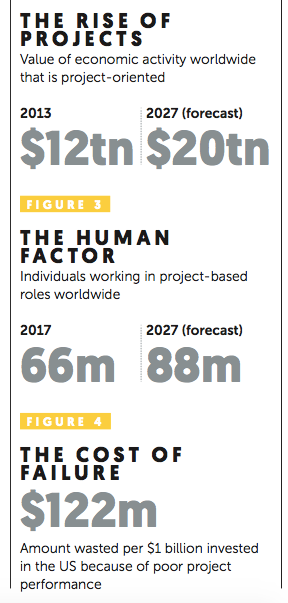 A less discussed consequence of this new operating environment is the exponential growth in project-based work. About a fifth of the world’s economic activity a year – $12 trillion – is now organized as projects. Over the next decade, organizations are expected to experience a 68% increase in project-based work. As Duke CE educator and Dialogueauthor Antonio Nieto-Rodriguez notes: “This is one disruption affecting our world that media and academia have missed.”